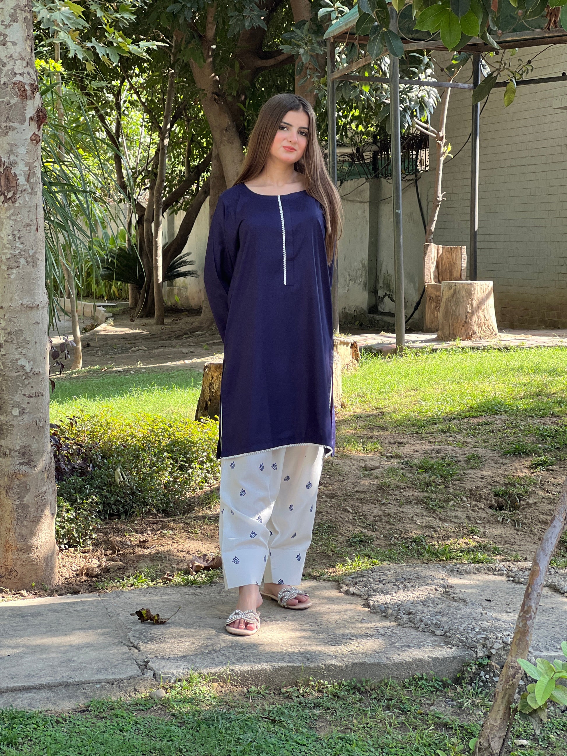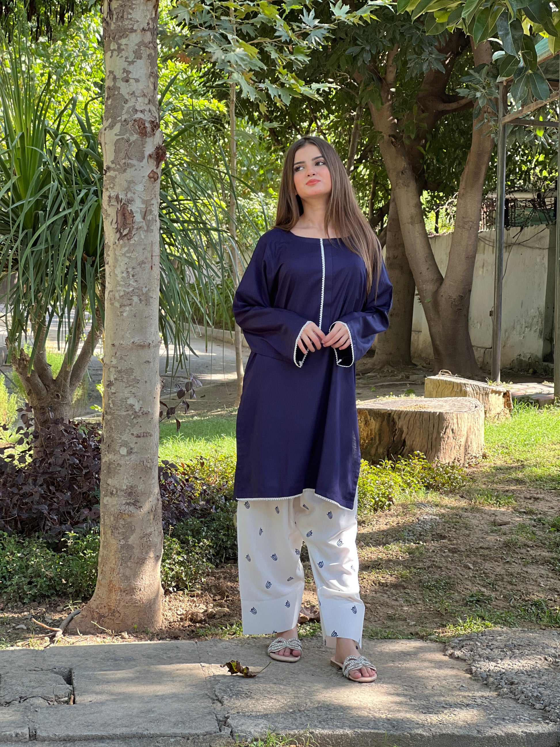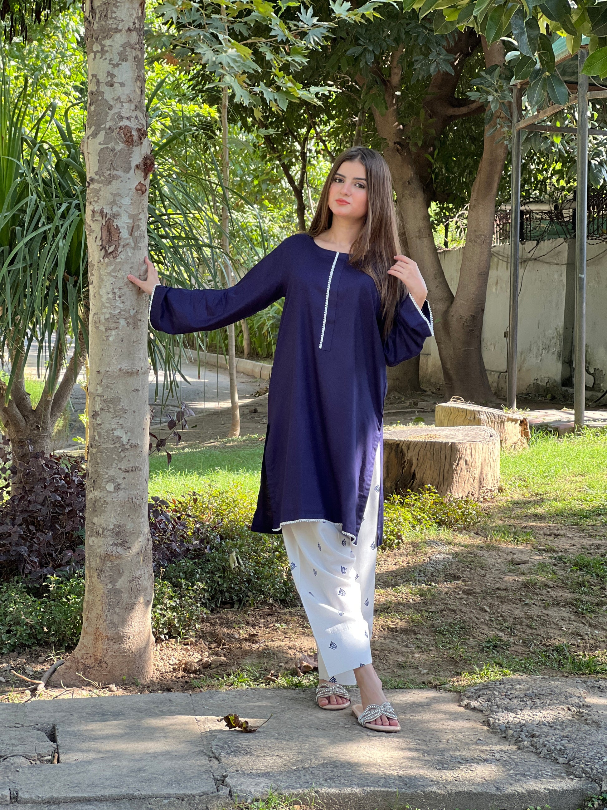 This elegant Daily Wear Kurta Set features a Straight Cut Kurta in Navy Blue with a White linen Trouser. Perfect for Winter Wear, the outfit exudes simplicity with a touch of sophistication. No Lining attached for comfort. Elevate your wardrobe with this chic ensemble from B.K Clothings.\