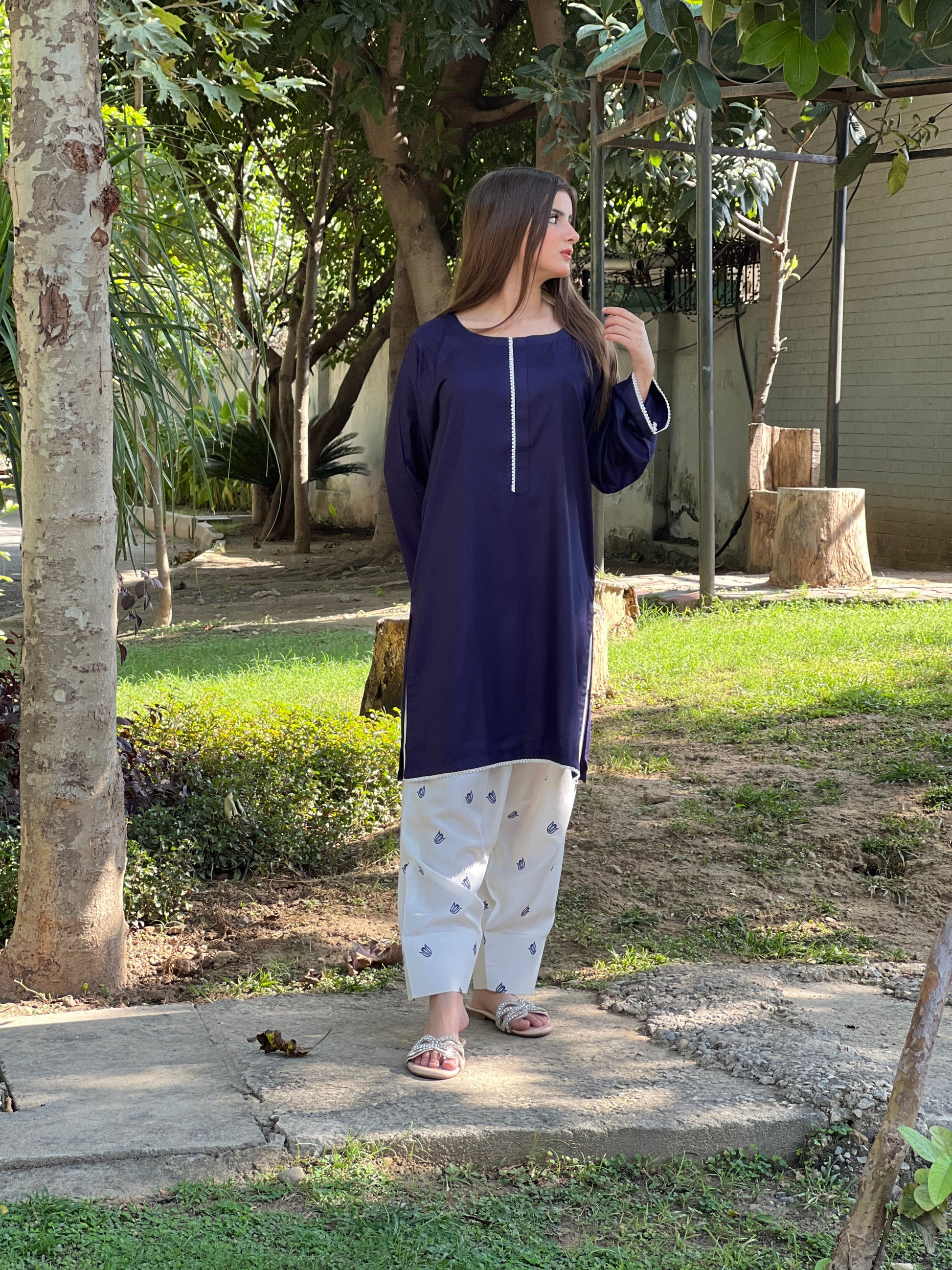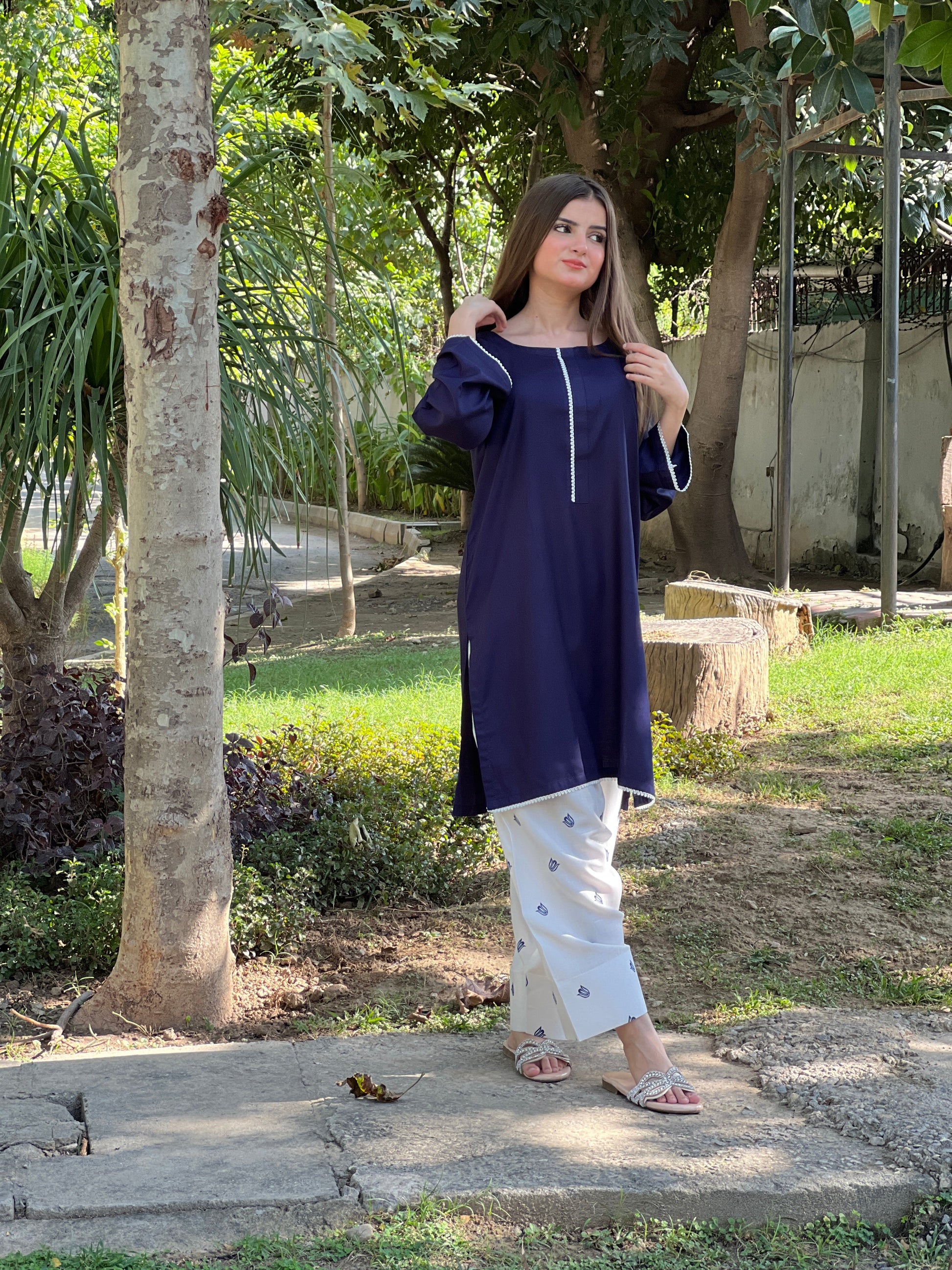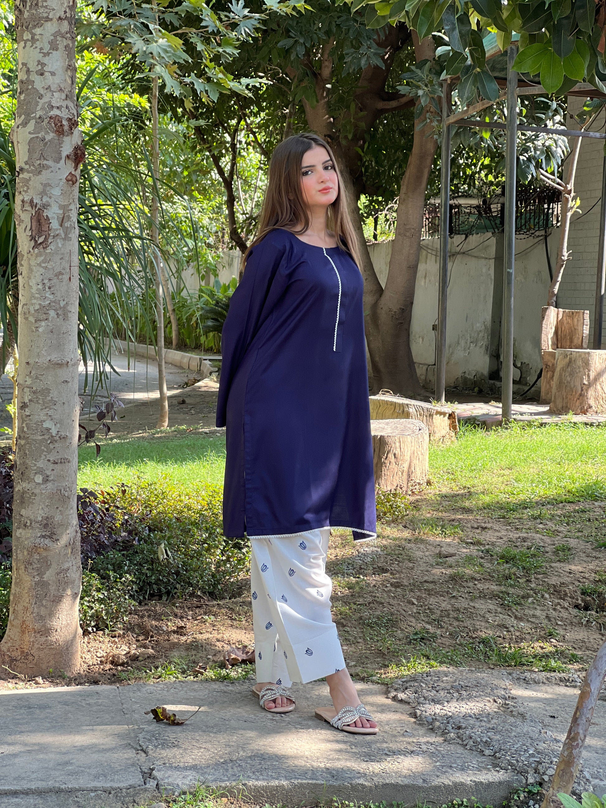 This elegant Daily Wear Kurta Set features a Straight Cut Kurta in Navy Blue with a White linen Trouser. Perfect for Winter Wear, the outfit exudes simplicity with a touch of sophistication. No Lining attached for comfort. Elevate your wardrobe with this chic ensemble from B.K Clothings.\